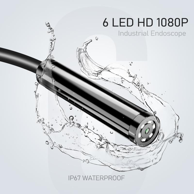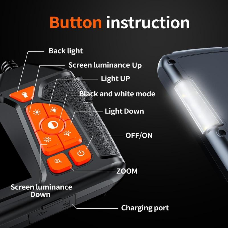 Enhanced Illumination: Includes 6 LED lights on the camera head, providing adjustable brightness to illuminate dark environments for detailed viewing.